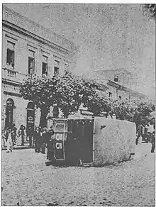![]() Tram overturned by the population in Praça da República during an uprising | |