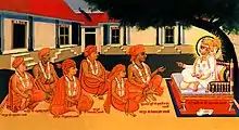 Four of Swaminarayan's senior disciples, Gopalanand Swami (Gopālānanda Svāmī), Muktanand Swami (Muktānanda Svāmī), Nityanand Swami (Nityānanda Svāmī), and Shukanand Swami (Śukānanda Svāmī), transcribed and compiled the discourses.[1]: 14 The Ahmedabad diocese within the Swaminarayan Sampradaya accepts Brahmanand Swami (Brahmānanda Svāmī) as a fifth editor.[2]: 187 [5]: 49 The compilers' scholarly aptitude, literary and poetic expertise, and transparency contribute to the merits of the Vachanamrut.[6]: 17