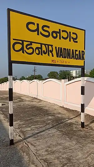 Vadnagar railway station (station code: VDG) is a railway station in Vadnagar, Mehsana district, Gujarat. Vadnagar railway station is on the Mahesana–Taranga Hill line, a branch railway line. It is under the Ahmedabad railway division of Western Railway zone of Indian Railways. It is located 156 metres (512 ft) above mean sea level. The nearest railway junction is Mahesana Junction railway station and the nearest passenger airport is Sardar Vallabhbhai Patel International Airport at Ahmedabad.[3]