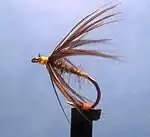 An artificial "fly" is used in fly fishing.