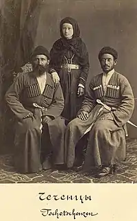 Russian historian Adolf Berge used this term for both Chechens and Ingush in 1859.[5] The famous Russian linguist Peter von Uslar, who studied the North Caucasian languages, also referred to both nations in 1888 as "Nakhche".[6] This term was also used by Potto,[7] Veidenbaum,[8] Gan,[9] Dubrovin[10] and many others during the 19th century.