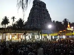 Vaitheeswaran Koil is a Hindu temple dedicated to the Shiva, located in the Indian state of Tamil Nadu.[2] Shiva is worshipped as Vaidyanathar or Vaitheeswaran meaning the "God of healing" and it is believed that prayers to Vaitheeswaran can cure diseases. Vaitheeswaran is a Tamil derivative from vaidya (Doctor) and Ishvara (God/Master). The presiding deity is Sri vaidyanathan, facing towards West whereas East side is the common one. He is the God of Healing. When pronouncing in Tamil, it sounds like "vaideeswaran". It is one of the nine Navagraha (nine planets) temples and is associated with the planet Mars (Angaraka).