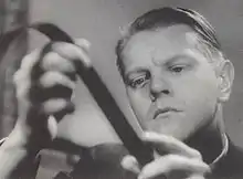 As a teenager, Vaala befriended Theodor Tugai – who later became known as a film director and actor under the name Teuvo Tulio – and the pair recognized their common interest in films.[4] They decided to start making films together, but their first feature-length attempt, Mustat silmät in 1929, never received wide distribution. Vaala himself was reportedly so disappointed with the resulting film that he dumped the original camera negatives into the sea.[5] However, later in the same year, Vaala and Tulio partially remade the film as Mustalaishurmaaja for the Fennica-Filmi company. This film became a hit and earned the starring Tulio the nickname "Finland's Valentino".[6] The pair went on to make two other films, Laveata tietä (1931) and Sininen varjo (1933) with Vaala directing and Tulio starring.