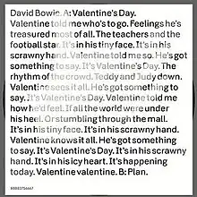 "Valentine's Day" is a song by English rock musician David Bowie, the fourth single from his 25th studio album The Next Day. The single was released on 19 August 2013. This was to be Bowie's final 7-inch single issued from a new album released in his lifetime. The lyrics are based on the psychology of a school shooter.[3]