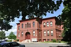 The school was built in 1898-99 to a design by George P. B. Alderman, a regionally prominent architect from Holyoke. It was connected by a tunnel to an older school on the same lot, which was demolished in the 1950s. It served as a public school until the 1980s,[3] and has since been converted into apartments, with additional apartment blocks added at one corner of the property.