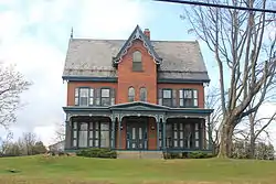 Valentine Weaver House, also known as Weaver House, is a historic home located in Macungie, Lehigh County, Pennsylvania. It was built in 1876, and is a three-story brick dwelling in the form of a Gothic Cottage. It has a central projecting pavilion on the front façade, a patterned slate roof, and a full-width front porch. Also on the property are a brick octagonal outhouse, brick smokehouse, spring house, and ice house.[2]