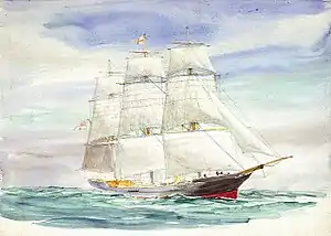 At some point her ownership was transferred to F. Baudoin, of Le Havre, France, and it was under her tenure that, while carrying oranges and wine from Valencia to Dunkirk, she foundered and was wrecked in a storm on 2 December 1921, off Cape St. Vincent.[24][25]