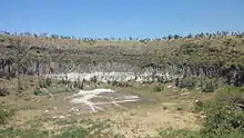 Over 30 inactive volcanic craters are located in Valle de Santiago, but only 7 of those are recognized, and protected as they have been declared a national monument. The seven volcanic craters are known as Siete Luminarias and include Cíntora, Hoyas de Santa Rosa, La Alberca, San Nicolás de Parangueo, Blanca, Estrada, Álvarez and Solís. Many of these craters naturally evolved into crater-lakes, and they would later become recreational spots. La Alberca, which translates to "the pool", was once an abundant lake that just over 40 years ago was filled with fresh water, but due to human activity has now dried up and been populated with cacti and shrubs. One of the biggest factors for the current state of these now dried crater lakes is the over extraction of groundwater for both water supply and irrigation. [2] The government has banned groundwater extraction and they are making various efforts to conserve the condition of these seven craters and prevent further damage. Since the SIete Luminares are essential for agriculture and wildlife, there is a large amount of effort being pushed towards their preservation.[2]