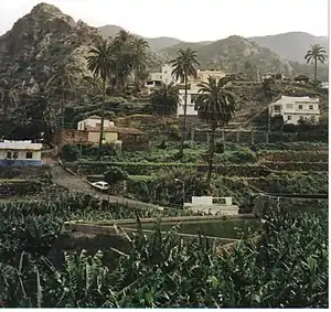 Vallehermoso is a village and municipality in the western part of the island La Gomera in the province of Santa Cruz de Tenerife of the Canary Islands, Spain. The town of Vallehermoso, the seat of the municipality, is situated in the northern part of the municipality, 3 km from the coast and 18 km northwest of the island capital, San Sebastián de la Gomera.