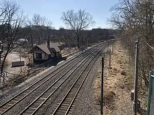 Valley Forge Park station (also known as Port Kennedy station) is a former train station in Valley Forge, Pennsylvania. The station is visible from Sullivan's Bridge in the Valley Forge National Historic Park. Valley Forge Park station was originally built by the Reading Railroad as Port Kennedy station, and later served the SEPTA diesel service extending from the Norristown section of the Manayunk/Norristown Line to Pottsville. Service was originally suspended prior to SEPTA taking over from Reading Railroad, but was opened in 1976 for the American bicentennial.[2] In 1981, the station was closed again when SEPTA discontinued the diesel service.