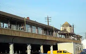 In 1933, the original station was razed as part of a grade crossing elimination project along the Montauk, Atlantic, and Babylon branches. Prior to this, a temporary station was relocated on a shoo-fly north of the former station on August 10, 1932, then moved to another one south of the former station on August 31 of the same year. The third elevated center-island structure that exists today was opened north of the former location on February 7, 1933, and although the wye was removed as part of the reconstruction, it remained on many maps well into the late-20th Century, and continues to be shown on some in the present.