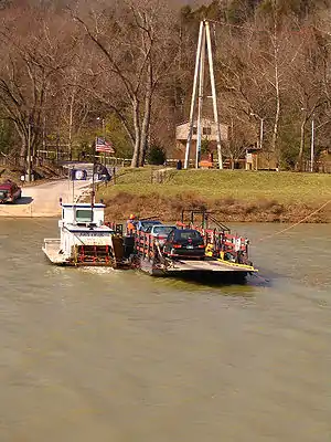 The Valley View Ferry provides passage over the Kentucky River in rural central Kentucky. Located on Kentucky Route 169, this ferry service connects auto traffic between the county seats of Richmond in Madison County and Nicholasville in Jessamine County. The ferry was founded in 1780, predating Kentucky's admission to the Union in 1792. It is widely regarded as the commonwealth's oldest continually operating business.[1]