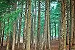 | Mediterranean cypress | All over the park. | Greece, Iran and Turkey | Evergreen tree up to 30 m tall with dark, thin and superficially wrinkled bark. Green leaves arranged in four opposite rows of two by two. | ![]() |