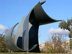 At the northern end of the park, next to the North Park, is located "Homage to Malevich" (in Catalan, Homenatge a Malèvitx). This sculpture is dedicated to Kazimir Malevich, a Russian painter, considered the creator of Suprematism.[34] It is a work of Jorge de Oteiza,[35] inaugurated on May 15, 1999. The piece had to be moved twice due to the urbanization of the so-called railwaymen's apartments and, later, for the construction of the Barcelona-Vallés line station. It weighs 26 tons and is made of zinc-coated metallized steel with a satin paint finish. The piece represents a test of a spatial rotation that Malevich called "Malevich's units".[36]
