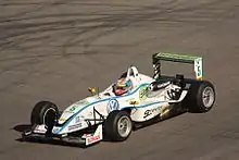 After two races in 2012 with Auer and van de Laar, the team moved to the FIA Formula 3 European Championship on the full-time basis in 2013. They kept van de Laar and signed Måns Grenhagen.[29][30] The team had tough start, with just one podium finish of Sven Müller, who took Grenhagen's car for the last three rounds of the season.[31] The team remained in the German F3 with Gustavo Menezes and Jordi Weckx as their drivers.[32][33] Both of them wasn't able to give the fight to Lotus drivers, who occupied the top step of the podium in the races with the full-points distribution.