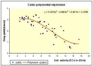 with Y =Yield, X = salt concentration of the soil, while A, B, C and D are constants to be determined by the regression.