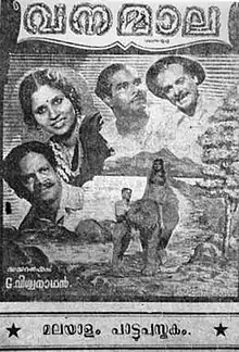 Vanamala is a 1951 Indian Malayalam-language film, directed by G. Viswanath and produced by V&C Productions.[1] The film stars P. A. Thomas, Ammini in lead roles. The film had musical score by P. S. Divakar. It is the first jungle movie in Malayalam, also the debut film of Neyyattinkara Komalam, director G. Viswanath, lyricist P. Kunjukrishna Menon, singer Jikki and cameraman Arumugham.[2]