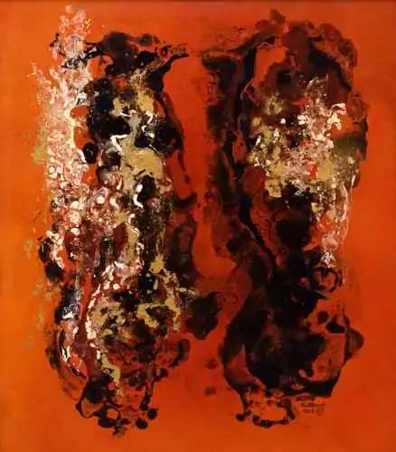 ![]() Asian Dancing Forms, 1963, oil paint and water with gold leaf on linen, by Vance Kirkland. |