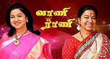 Vani Rani is a 2013 Indian Tamil-language soap opera that aired on Sun TV from 21 January 2013 to 8 December 2018 for 1,743 episodes.[1][2] The show starred Radikaa Sarathkumar, Venu Arvind and Babloo Prithiveeraj.