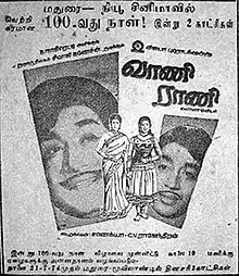 Vani Rani is a 1974 Indian Tamil-language film, directed initially by Tapi Chanakya and finished by C. V. Rajendran. Produced by Nagi Reddi and Chakrapani. The film stars Sivaji Ganesan, Vanisri and R. Muthuraman. It is a remake of the Hindi film Seeta Aur Geeta. The film was released on 14 April 1974.[1]