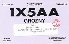 - QSL card from Chechnya using unofficial callsign 1X5AA