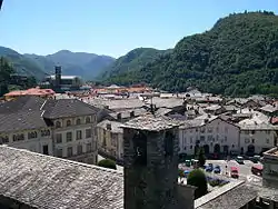 The valley of the Sesia is very narrow at this point as it nears its source. Varallo lies on the left bank where the Mastallone flows into the Sesia.
