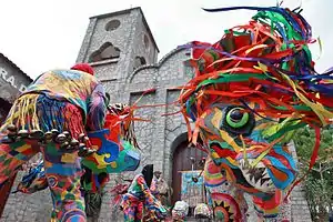 The dancing devils of Corpus Christi, along with 11 other brotherhoods in the country, entered the representative list of Intangible Cultural Heritage of Humanity approved by the United Nations Educational, Scientific and Cultural Organization (UNESCO) in Paris on December 6, 2012.25 This is the legacy of the first inhabitants of Naiguatá, a product of racial and cultural crossbreeding. In this magical-religious celebration of Corpus Christi, the Holy Sacrament of the Altar is worshipped in a festival of marked religious syncretism with the dance of hundreds of Devils dancing all over the town, making their tradition last in time and never to be forgotten. They identify themselves by painting their own costumes, wearing white pants and a white shirt, painted with crosses, stripes and circles, figures that prevent the evil one from dominating them. The masks are mostly marine animals. They wear crossed scapulars, carry holy palm crosses and crucifixes. They do not wear a cape or a mandator.