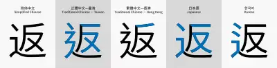 ![]() Differences for the same Unicode character in regional versions of Source Han Sans | |||||||||||||