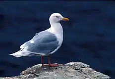 Glaucous (from the Latin glaucus, meaning "bluish-gray", from the Greek glaukos) is used to describe the pale gray or blue appearance of the surfaces of some plants, as well as in the names of birds, such as the glaucous gull (Larus hyperboreus), glaucous-winged gull (Larus glaucescens), glaucous macaw (Anodorhynchus glaucus), and glaucous tanager (Thraupis glaucocolpa).