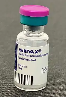 - "Varivax – varicella virus vaccine live injection, powder, lyophilized, for suspension". DailyMed. Retrieved 27 February 2021.