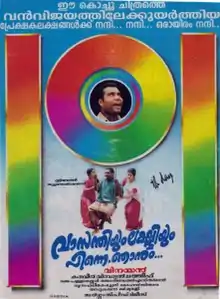 Vasanthiyum Lakshmiyum Pinne Njaanum (transl. Vasanthi, Lakshmi, and me) is a 1999 Indian Malayalam-language drama film directed by Vinayan based on a screenplay by J. Pallassery. The film features Kalabhavan Mani, Kaveri, Praveena and Sai Kumar in the lead roles.[2] The film centers around Ramu, a blind poet and singer who supports his family. However, their happiness dissipates soon after he gets cheated by a rich businessman.[3] The film is reported to be inspired from Dosti (1964).[4]
