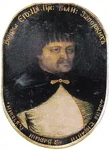 Vasily Leontiyevich Kochubey (Russian: Василий Леонтьевич Кочубей, Ukrainian: Василь Леонтiйович Кочубей, romanized: Vasyl Leontiiovych Kochubei) (c. 1640 – 15 July 1708) was a statesman of the Cossack Hetmanate of Crimean Tatar descent. His tenure was characterized by Pro-Moscow policies and was cut short by his execution on Hetman Ivan Mazepa's orders. Kochubey's great-grandson was the eminent Imperial Statesman Viktor Kochubey. The family name is also spelled Kotchoubey (French) and Kotschoubey (German, Almanach de Gotha).