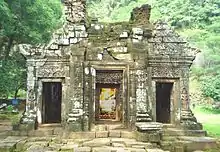 There was a sanctuary on the site centred on a sacred spring and an offering place for a mighty tutelary sprit dating back to pre-historic times. The first megalithic stone structures had been built probably as early as the second century BCE, consisting of two stone cells, a carving of a crocodile, a serpent stairs and several offering platforms.[1] One of the first pre-Angkor brick buildings onsite was erected in the early 7th century and became the focus of all consequent building activities.[1] Most of the other surviving buildings date from the Angkor period in the 11th to 13th centuries.