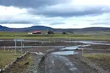 Substantial volcanic activity also characterises the landscape west of Vatnajökull, where two of the world's greatest fissure and lava eruptions of historical times occurred, at Eldgjá in 934 and Lakagígar 1783-1784. Vonarskarð [ˈvɔːnarˌskarθ], northwest of the glacier, is a colourful high-temperature area and a watershed between North and South Iceland.