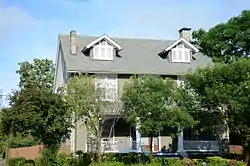 The Vaughan House is a historic house at 2201 Broadway in central Little Rock, Arkansas. It is a 2+1⁄2-story wood-frame structure, with a gabled roof, clapboard siding, and a high brick foundation. A single-story porch extends across its front, supported by square posts set on stone piers. Gabled dormers in the roof feature false half-timbering above the windows. Most of the building's windows are diamond-paned casement windows in the Craftsman style. The house was built about 1910 to a design by the noted Arkansas architect Charles L. Thompson.[2]