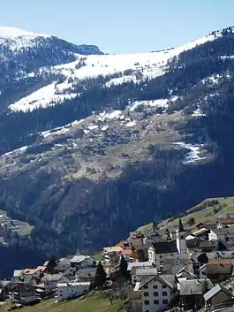 Obervaz was definitely settled by the time of the Carolingians (750-910). The inventory of the belongings of the Frankish crown in Raetia made in 831 mentions Lain, Muldain and Zorten along with their churches. Around 840 the entire region was mentioned as villa Vazzes.[7] Excavations near the old parish church of St. Donat in Zorten discovered Roman finds, among others.