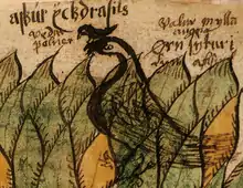 In Norse mythology, Veðrfölnir (Old Norse "storm pale,"[1] "wind bleached",[2] or "wind-witherer"[3]) is a hawk sitting between the eyes of an unnamed eagle that is perched on top of the world tree Yggdrasil. Veðrfölnir is sometimes modernly anglicized as Vedrfolnir, Vedurfolnir or Vetrfolnir.