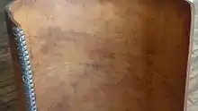 Flat belts were traditionally made of leather or fabric. Early flourmills in the Ukraine had leather belt drives. After World War I, there was such a shortage of shoe leather that people cut up the belt drives and made shoes. Selling shoes was more profitable than selling flour, for a time anyway. Flour milling soon came to a standstill and bread prices rose, contributing to famine conditions.[5] Leather drive belts were put to another use during the African Rhodesian War (1965-1979) To protect riders of cars and busses from land mines, layers of leather belt drives were placed on the floors of vehicles in danger zones. Today most belt drives are made of rubber or synthetic polymers. Grip of leather belts is often better if they are assembled with the hair side (outer side) of the leather against the pulley, although some belts are instead given a half-twist before joining the ends (forming a Möbius strip), so that wear can be evenly distributed on both sides of the belt. Belts ends are joined by lacing the ends together with leather thonging (the oldest of the methods),[6][7] steel comb fasteners and/or lacing,[8] or by gluing or welding (in the case of polyurethane or polyester). Flat belts were traditionally jointed, and still usually are, but they can also be made with endless construction.