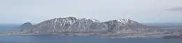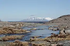 The southwestern part of the island is mountainous, with the highest point being the 803-metre (2,635 ft) tall Trollvasstinden. The rest of the island rather flat and marshy.[1]
