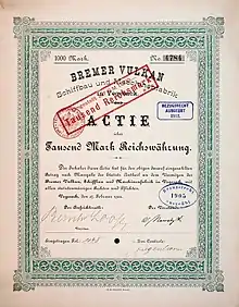 | Parent | Johann Lange Shipyard and Bremer Schiffbaugesellschaft, former H. F. Ulrichs Shipyard |