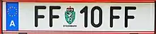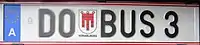 In Austria, it is possible to obtain a customized registration plate by payment of €228.30 for registration and €21.00 for the plates themselves.[1] The alphanumeric format is XX ∇ ABC 1, which makes them easily distinguishable from standard plates (e.g. DO ∇ BUS 3)