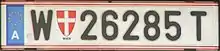 - the coat of arms of the Austrian state the district belongs to (here shown as "∇"); diplomatic vehicles have a dash (–) instead, federal official vehicles wear the Austrian Federal Eagle.