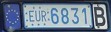 The plate meets the European standard format: on the left a blue stripe showing the letter B and a circle of stars.