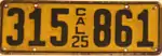 1925 | black on yellow | 123 456 | 1 to 30 00, 250 001 to 999 999 | Serials 30 01 through 250 000 reserved for non-passenger vehicles. |