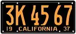 1941–44 | embossed yellow serial on black plate, "19 CALIFORNIA 41" on top | 1A 23 45 12 A 345 |