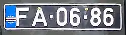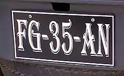 The format is AB-12-CD, where AB is the regional code. Vehicles of the Armed Forces bear registration plates of the type "FA-12-34".