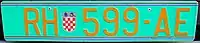 Also from 2008 onwards, export plates are introduced, with RH standing for Republika Hrvatska, and a green background with yellow numbers and letters. Croatia's Ministry of Internal Affairs proposed new licence plates with the EU stars.[4]