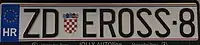 There is also a possibility of having a customized plate for a fee. One type of customized plate looks exactly like the standard ones, with the exception that the combination of numbers and letters is personally chosen by the vehicle's owner. The other kind of customized plates can consist of a word with from four to seven letters or a combination of the word with four or five letters and one or two numbers. However, these plates are still quite rare in Croatia, mostly because they can only be used for five years after the first registration and they also require a fee of 2,000 kuna (cca. 270 euros).[1]