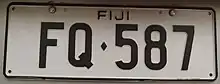 Fiji requires its residents to register their motor vehicles and display vehicle registration plates.[1] Current plates are Australian standard 372 mm × 134 mm, and use Australian stamping dies.[2]