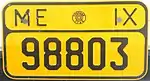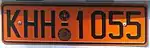 In 1956 the system was again changed to just numbers NNNNNN. NNNNNN could be any number from one to six digits starting once again with "1" and ending this time at about "451000", though not all numbers were allocated. Characters were black on white background with a band at the top of both front and rear plates indicating city/district of registration and type of usage (private, commercial etc). Sometime after the early 60s the band on the front plate was abandoned and hence that plate became shorter in height, while the band at the rear became blue. This time it was not compulsory to change plates after 1972 when the newer system arrived. Hence these so-called "six-figure plates" can still occasionally (as of 2018) be spotted on a few old vehicles.